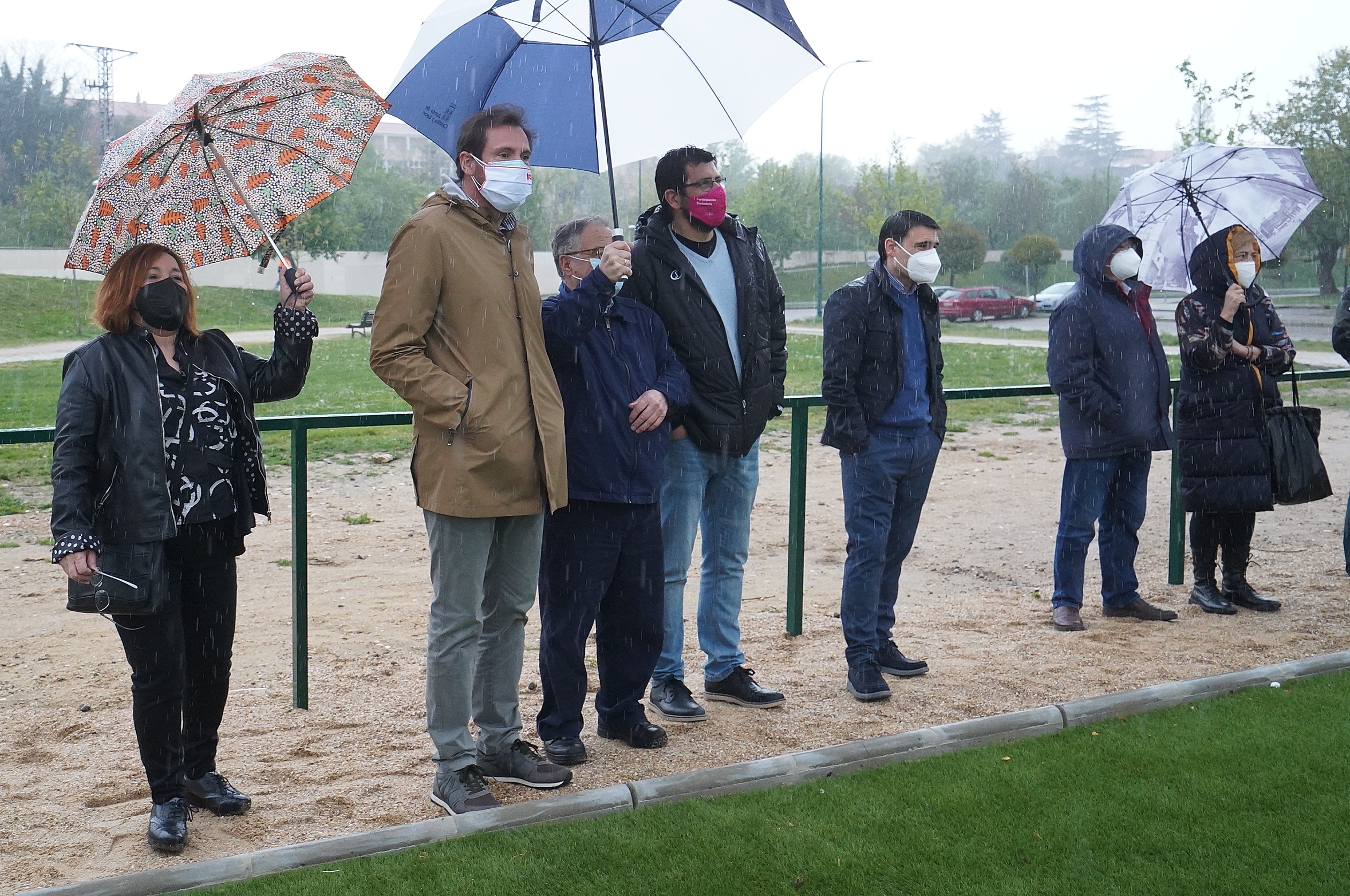 Además, se ha realizado el acondicionamiento de la zona con césped sintético, cuyo coste asciende a 19.723 euros. La empresa Activa Parques y Jardines ha procedido a instalación de un césped sintético fibrilado de 13 mm de altura, polietileno resistente a rayos UV, con soporte de polipropileno, relleno de arena de sílice 16 kg por m2, para uso en exteriores sobre base amortiguadora pegado sobre bandas adhesivas