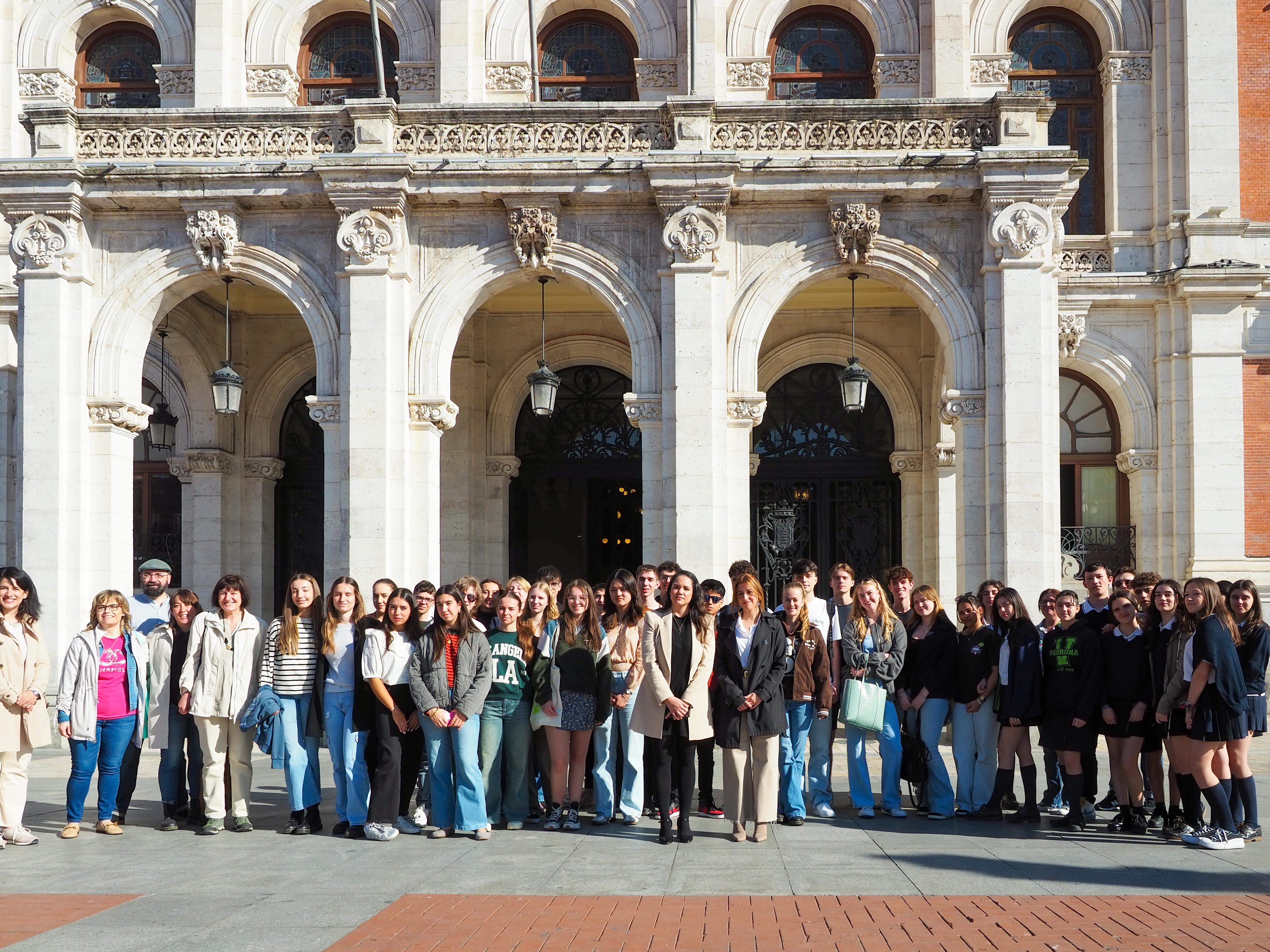 La Casa Consistorial ha acogido hoy a un grupo de estudiantes de centros educativos de Italia y Países Bajos que participan en el proyecto de Erasmus+ ‘Abriendo nuestras mentes, mejores personas’, gestionado por el Colegio Jesús y María de Valladolid.