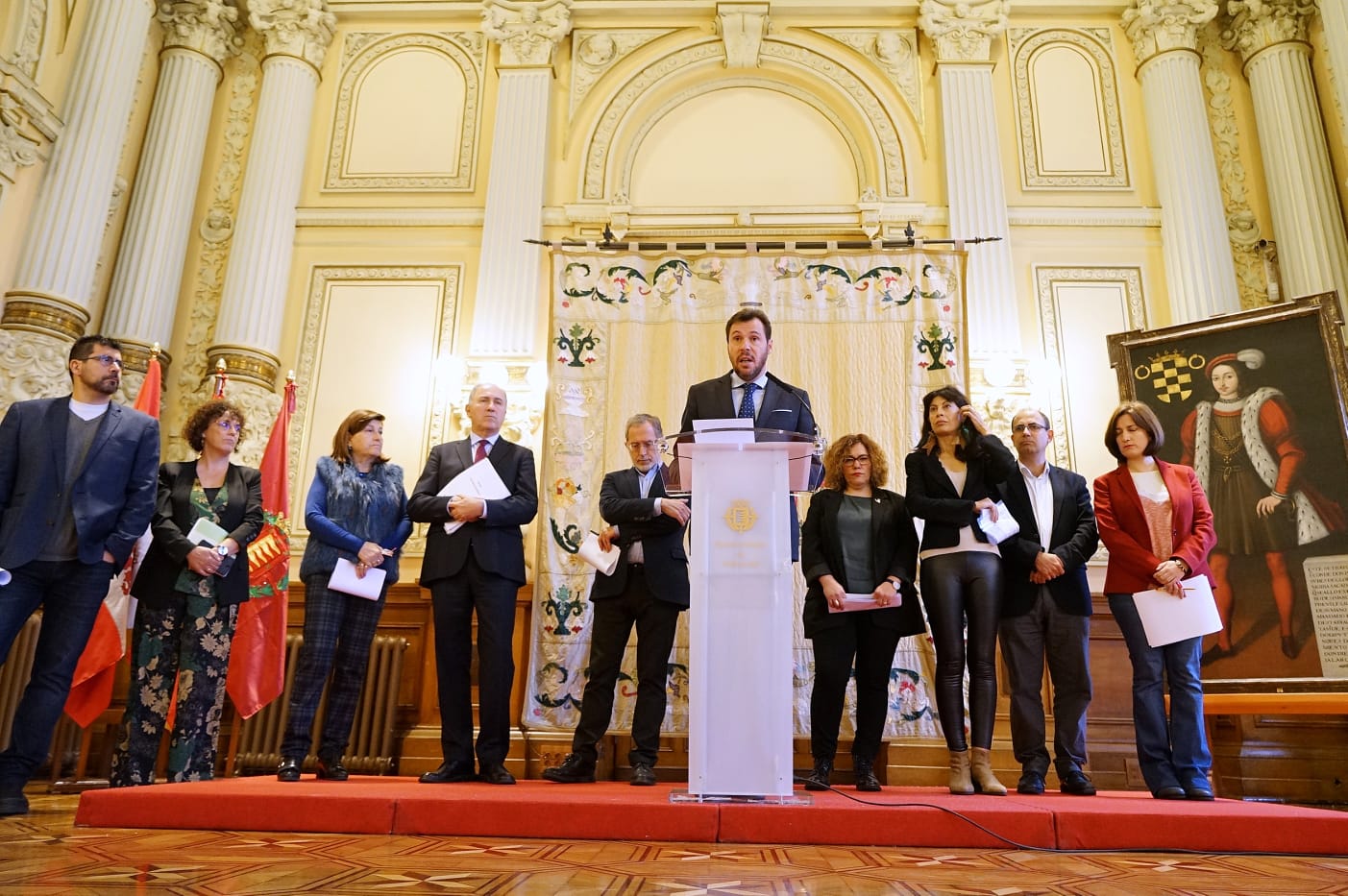 La presentación del Presupuesto 2019 ante los medios de comunicación ha estado presidida por el acalde, Óscar Puente, acompañado por el concejal Hacienda, Antonio Gato, así como por el resto de los miembros del equipo de gobierno: concejal de Urbanismo, Infraestructura y Vivienda, Manuel Saravia; concejala de Cultura y Turismo, Ana Redondo; concejal de Medio Ambiente y Sostenibilidad María Sánchez; concejal de Movilidad y Seguridad, Luis Vélez; concejal de Participación Ciudadana, Juventud y Deportes, Alberto Bustos, concejala de Educación, Infancia e Igualdad, María Victoria Soto; y concejal de Servicios Sociales, Rafaela Romero y la concejala de Si Se Puede Valladolid, Rosario Chávez.