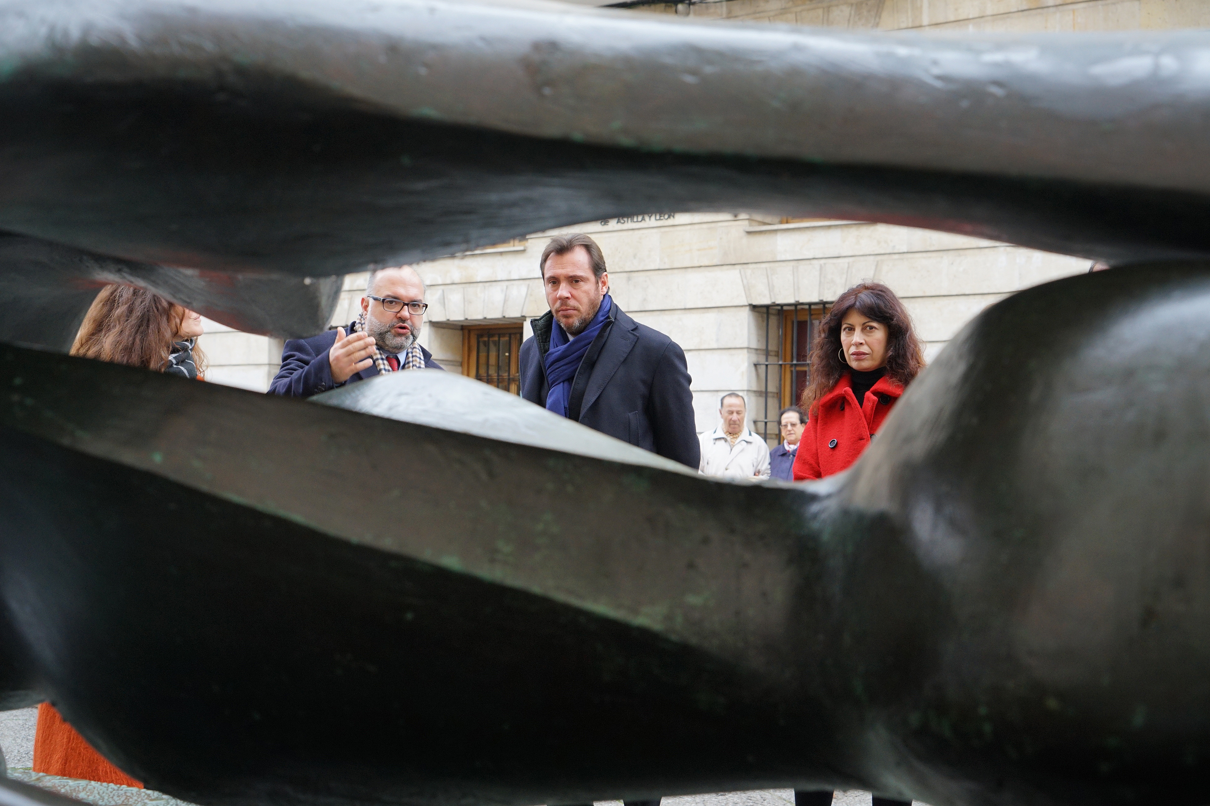 El alcalde Valladolid, Óscar Puente; el director Territorial de CaixaBank en Castilla y León-Asturias, José Manuel Bilbao; y el jefe de colecciones de la Henry Moore Foundation, Sebastiano Barassi, han presentado hoy en Valladolid la exposición Henry Moore.