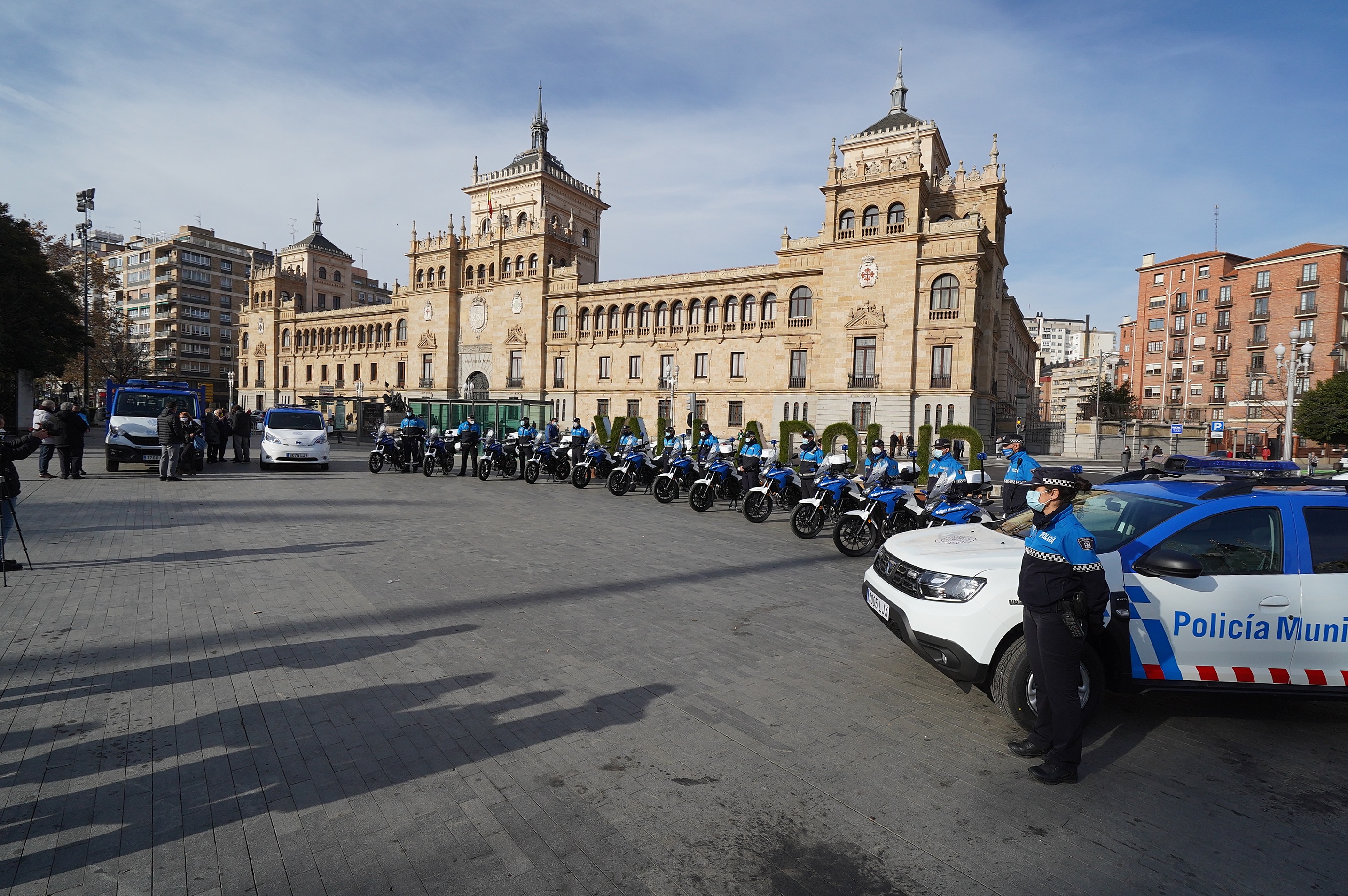 A 560.000 euros asciende la nueva inversión del Ayuntamiento de Valladolid para procurar que la Policía Municipal y los Bomberos dispongan de los medios apropiados para desempeñar el mejor servicio público a la ciudadanía. La inversión se concreta en la compra de 5 vehículos, 14 motos y dos camiones grúa para los agentes policiales, y una furgoneta eléctrica para el Servicio de Extinción de Incendios.