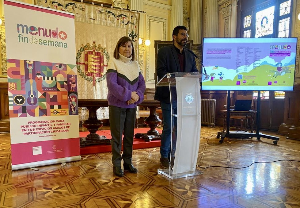 El concejal de Participación Ciudadana y Deportes, Alberto Bustos, acompañado por la concejala de Educación, Infancia, Juventud e Igualdad, María Victoria Soto, ha presentado la nueva edición de Menudo Fin de semana que ofrece el Ayuntamiento, a través de la Concejalía de Participación Ciudadana y Deportes, para el público infantil y familiar.