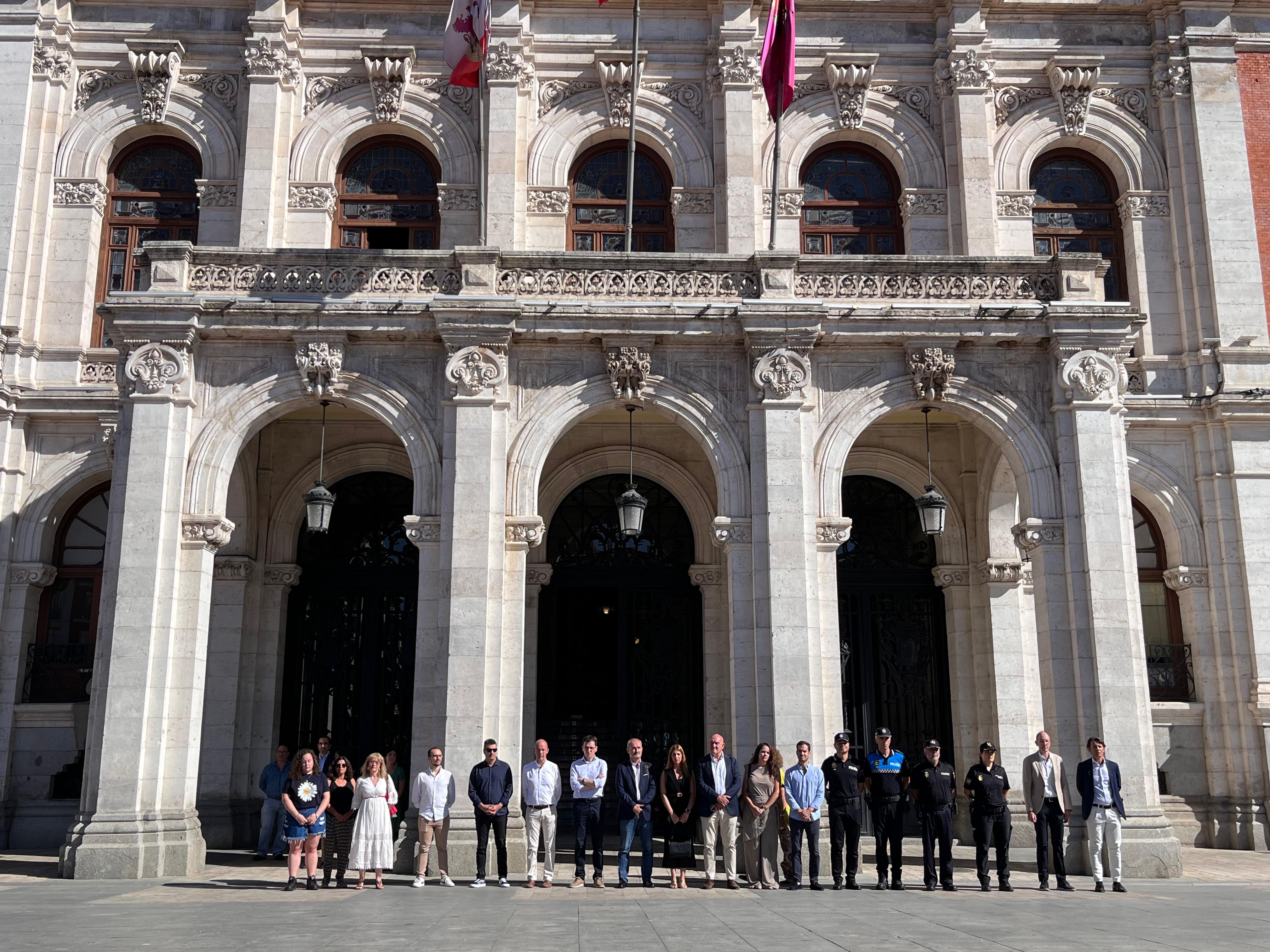 El alcalde de Valladolid, Jesús Julio Carnero, y miembros de la Corporación Municipal y otras autoridades han participado en el minuto de silencio en memoria de la vecina de la ciudad víctima de violencia de género.