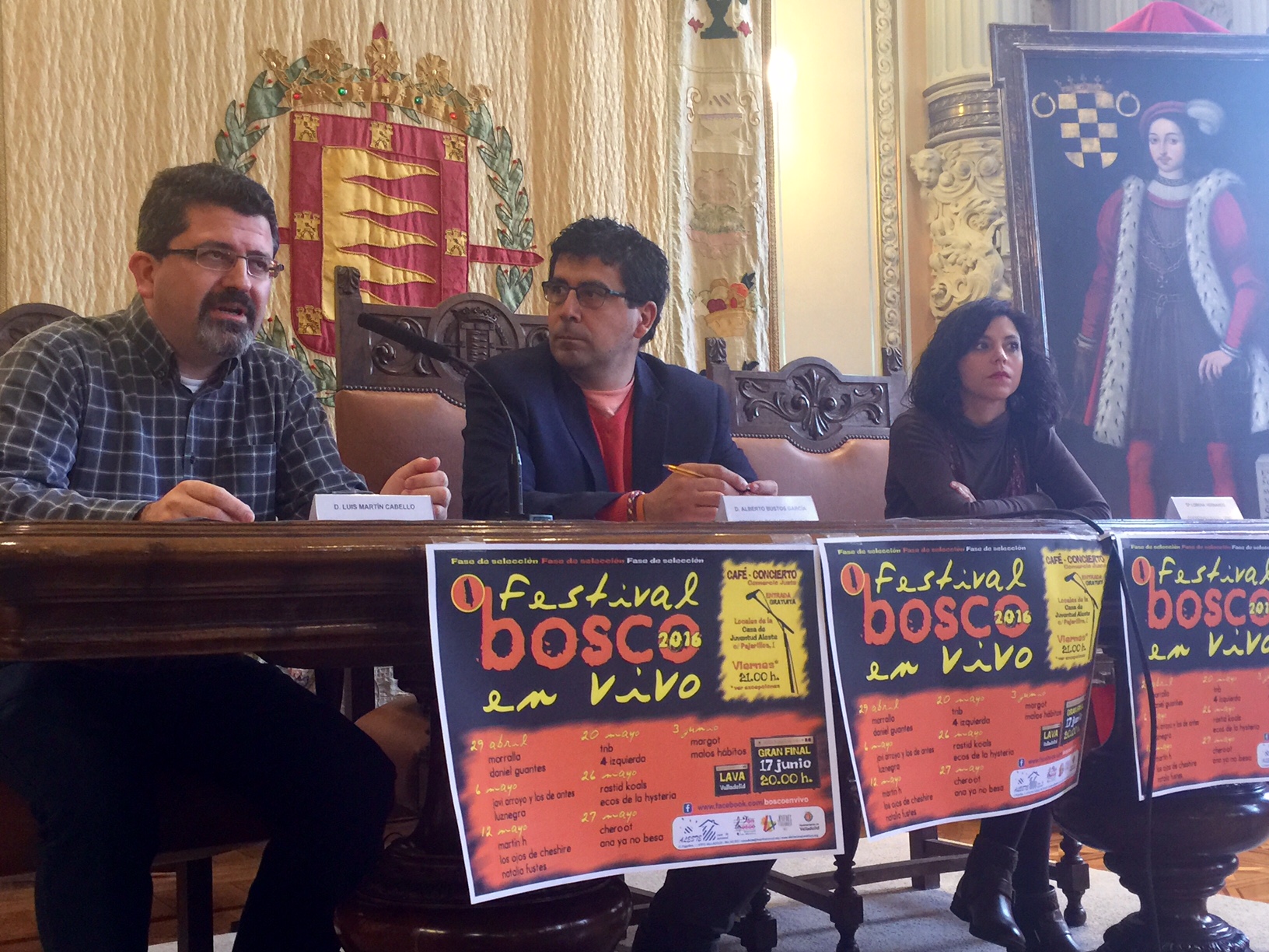 El concejal de Participación Ciudadana, Juventud y Deportes, Alberto Bustos, y el responsable de Casa Aleste, Luis Martín Cabello, han presentado este jueves la primera edición del Festival ‘Bosco en vivo’, una iniciativa de Aleste, que cuenta con la colaboración del Ayuntamiento para favorecer propuestas culturales en las periferias de la ciudad y promocionar a los músicos que están empezando, ofreciendo un espacio adecuado para darse a conocer.