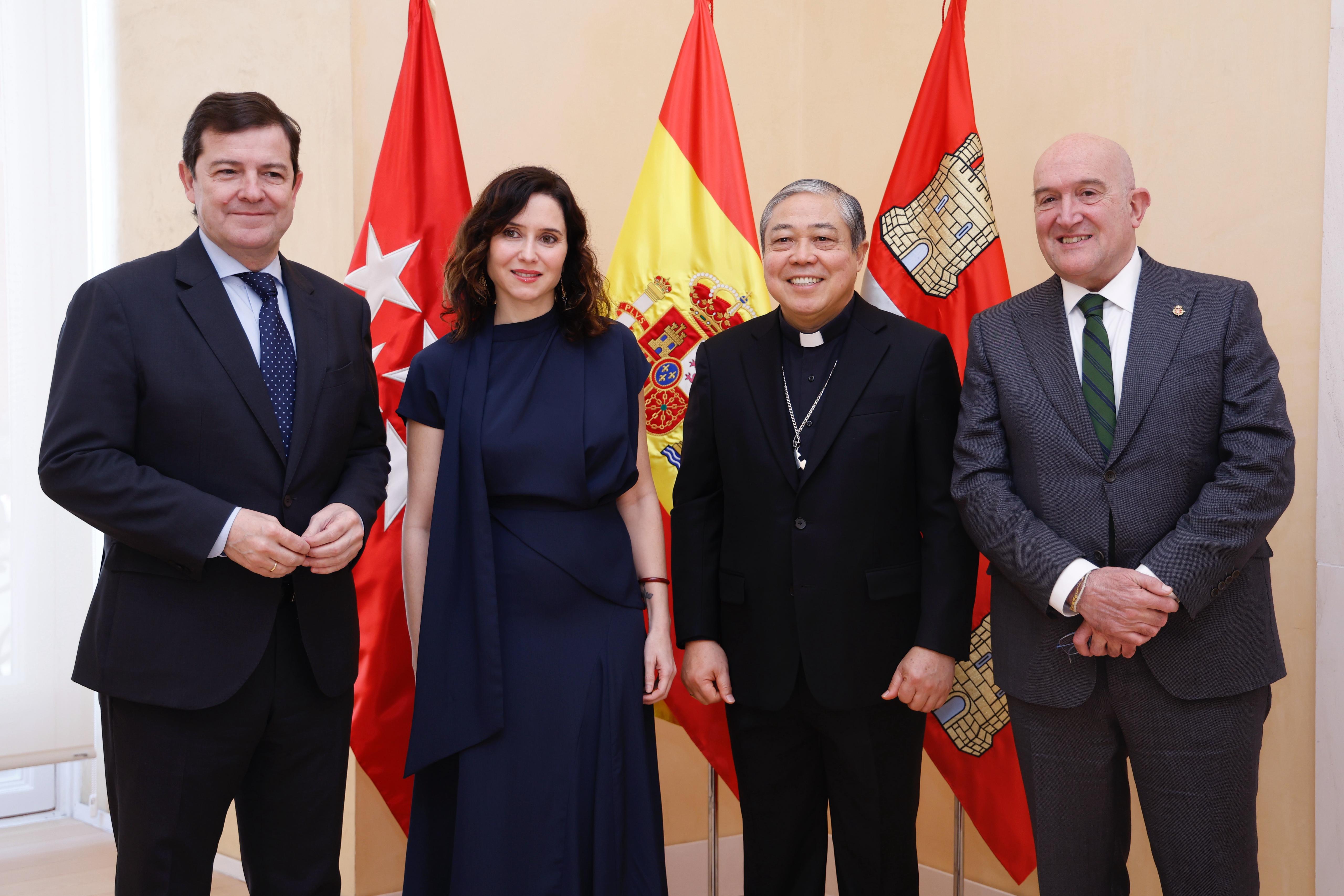 La Junta de Cofradías de Semana Santa ha organizado este acto novedoso en colaboración con el Ayuntamiento, que se ha celebrado en la Real Casa de Correos de la capital, presidido por la presidenta de la Comunidad, Isabel Díaz Ayuso.