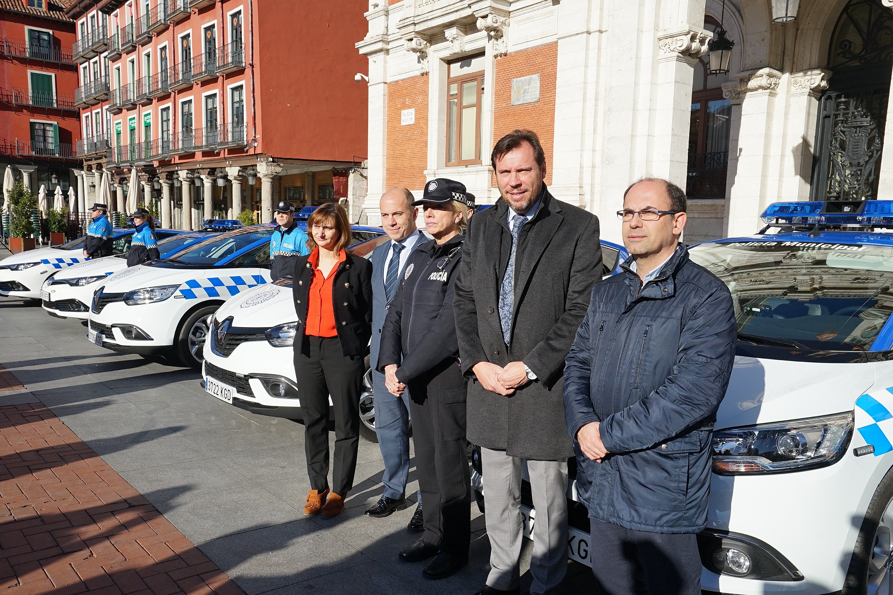El alcalde de Valladolid, Óscar Puente; el concejal de Seguridad y Movilidad, Luis Vélez; y la intendente de la Policía Municipal, Julia González, presentaron hoy ocho nuevos vehículos policiales, que contribuyen a la renovación de la flota de la Policía Municipal, y que se hace por una necesidad constatable derivada de la antigüedad de los vehículos existentes que han superado en algún caso los veinte años.