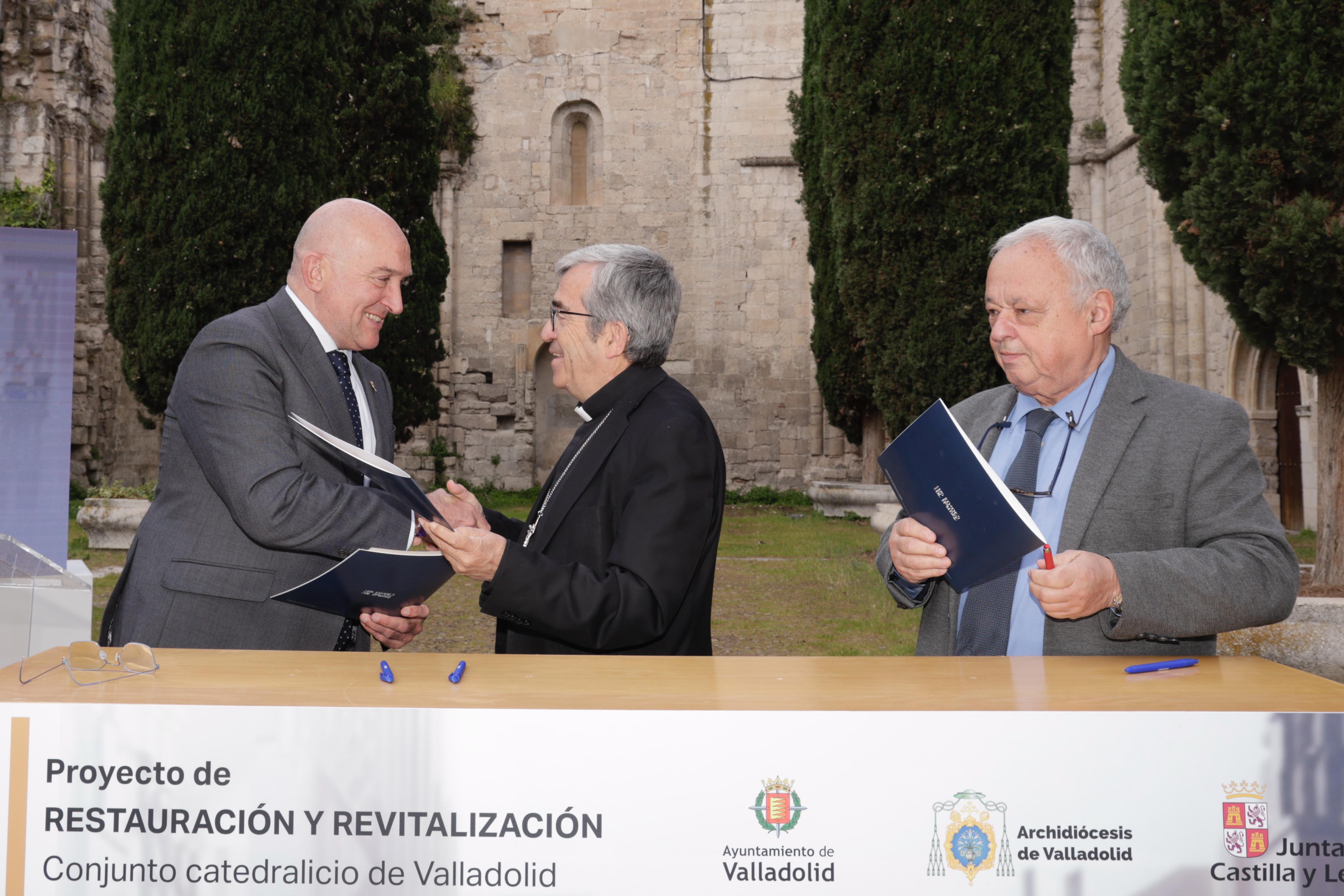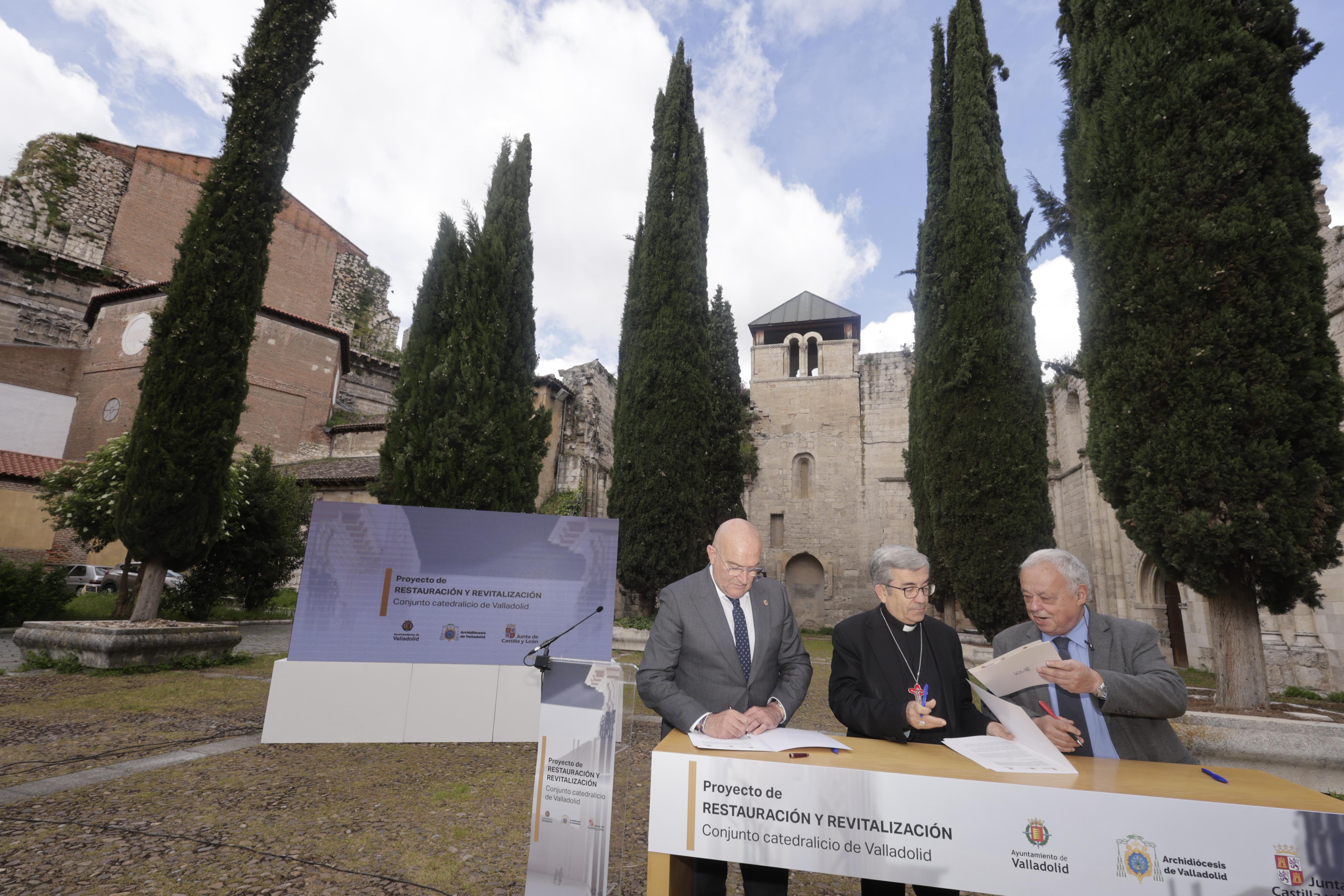 El Ayuntamiento de Valladolid ha firmado hoy un protocolo general de actuación con la Junta de Castilla y León y el Arzobispado de Valladolid para impulsar el ambicioso proyecto de restauración y revitalización del Conjunto Catedralicio de la ciudad, dentro del programa estatal del 2% Cultural.