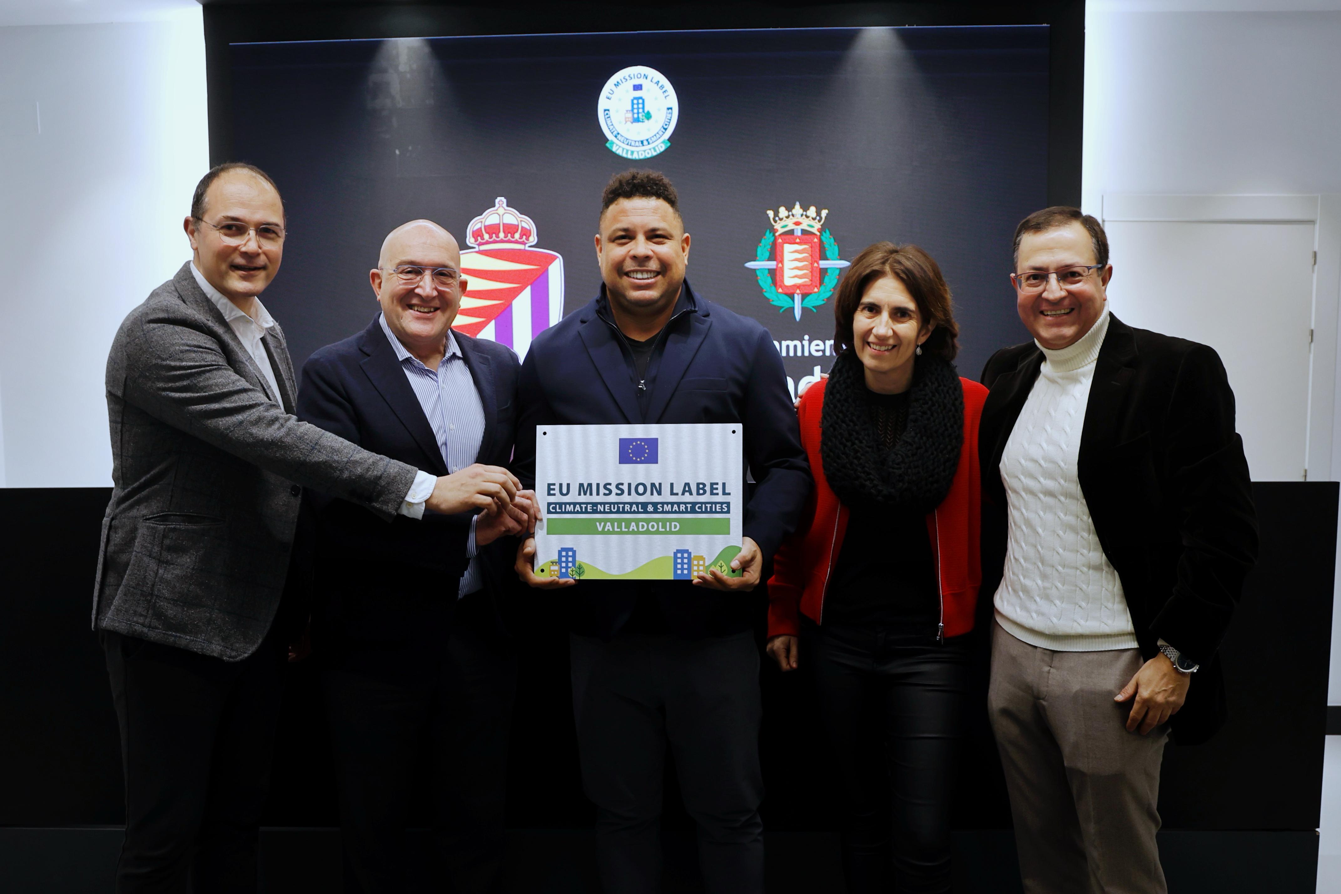 Así lo han rubricado hoy en el estadio José Zorrilla, el alcalde, Jesús Julio Carnero, y Ronaldo Nazario, presidente del Consejo de Administración del Real Valladolid. De esta forma, el Club, como embajador de la Misión, es la primera entidad deportiva de la ciudad y una de las primeras de España que suscribe esta ambiciosa iniciativa nacional y europea. Precisamente, la Comisión Europea acaba de valorar el Acuerdo Climático de Valladolid con la entrega del Sello Misión, un reconocimiento que han recibido 10 ciudades de este grupo de vanguardia.