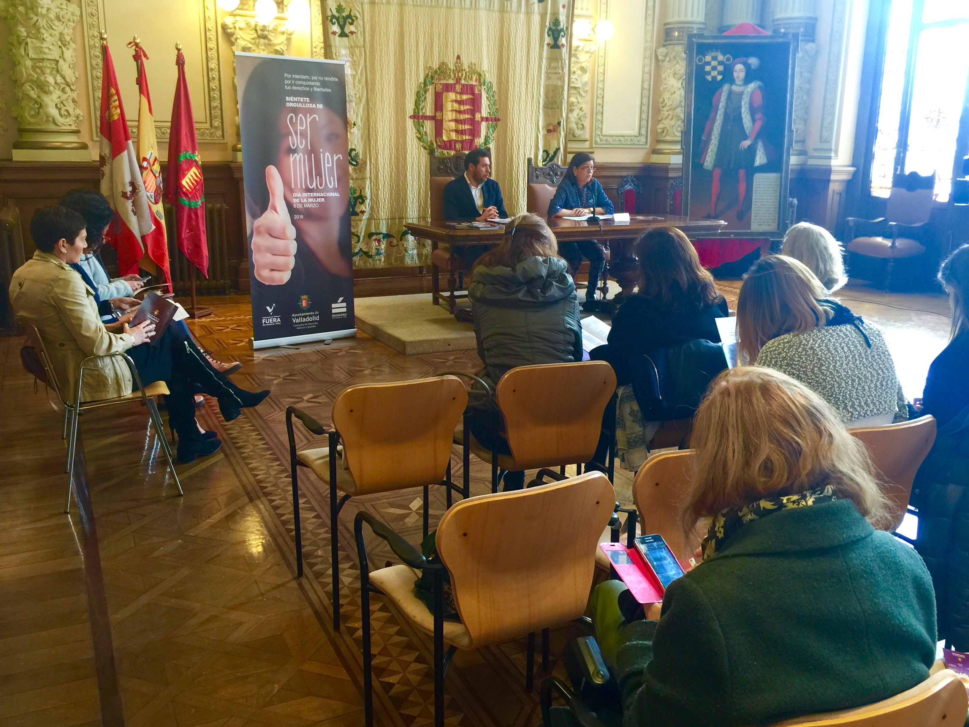 El alcalde de Valladolid, Óscar Puente, y la concejala de Educación, Infancia e Igualdad, Victoria Soto, presentaron esta mañana en la Casa Consistorial el amplio programa de actividades organizadas para el 8 de marzo, Día Internacional de la Mujer, cuyo acto institucional tendrá lugar en el propio Salón de Recepciones.