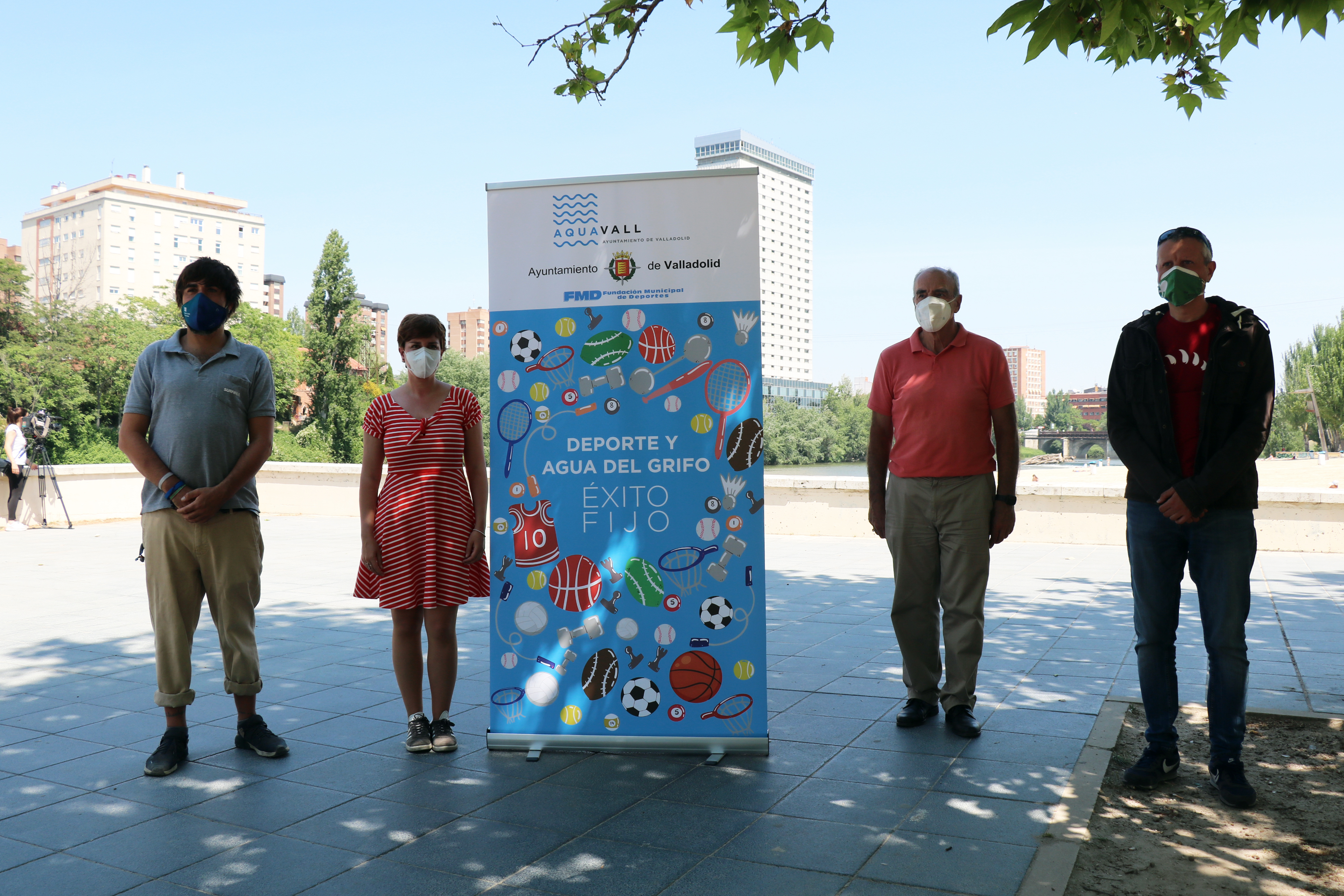 La concejala de Medio Ambiente y Desarrollo Sostenible y presidenta del Consejo de Administración de Aquavall, María Sánchez, ha presentado las actividades organizadas por la entidad pública que gestiona el agua de Valladolid con motivo del Día Mundial del Medio Ambiente, que se celebrará el 5 de junio, acompañada por el surfista vallisoletano Ángel Luis Curiel, el secretario de la Federación de Deporte Adaptado de Castilla y León, David Fernández, y Juan Antonio Crespo, vicepresidente de la Asociación Cultural Amigos del Pisuerga.
