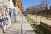 La zona peatonal junto a las vías del tren estará delimitada por un nuevo muro de cerramiento en hormigón blanco coronando por una valla en acero inoxidable, continuado con la estética creada en la Plaza Rafael Cano. El paseo peatonal existente será demolido, para crear uno nuevo a cota de la nueva rasante del vial que se proyecta. Tanto las plantaciones situadas en ese paseo peatonal elevado, como los árboles existentes junto a las fachadas de los edificios, serán eliminados; no así los que actualmente se encuentran al nivel de la calle que serán integrados en la nueva urbanización.